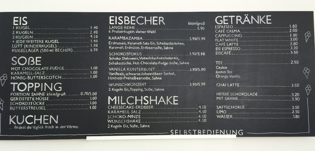 Introducing the Menu at Luicella's Ice Cream Lange Reihe